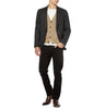 Paul Smith soft structured flecked wool blazer with three front pockets and a partial lining. The relaxed fit of this slate grey wool blazer lends the piece a less formal feel. Wear it with jeans for an ideal balance of smart and casual. Shown here with a Calvin Klein Underwear T-shirt,Burberry Prorsum cardigan, Burberry Brit jeans and Alexander McQueen shoes.